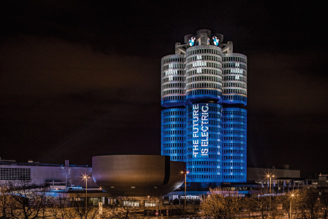 В понедельник баварский концерн отметил достижение своих целей символической иллюминацией своего здания в Мюнхене — башня напоминала «4 вертикальные батареи».