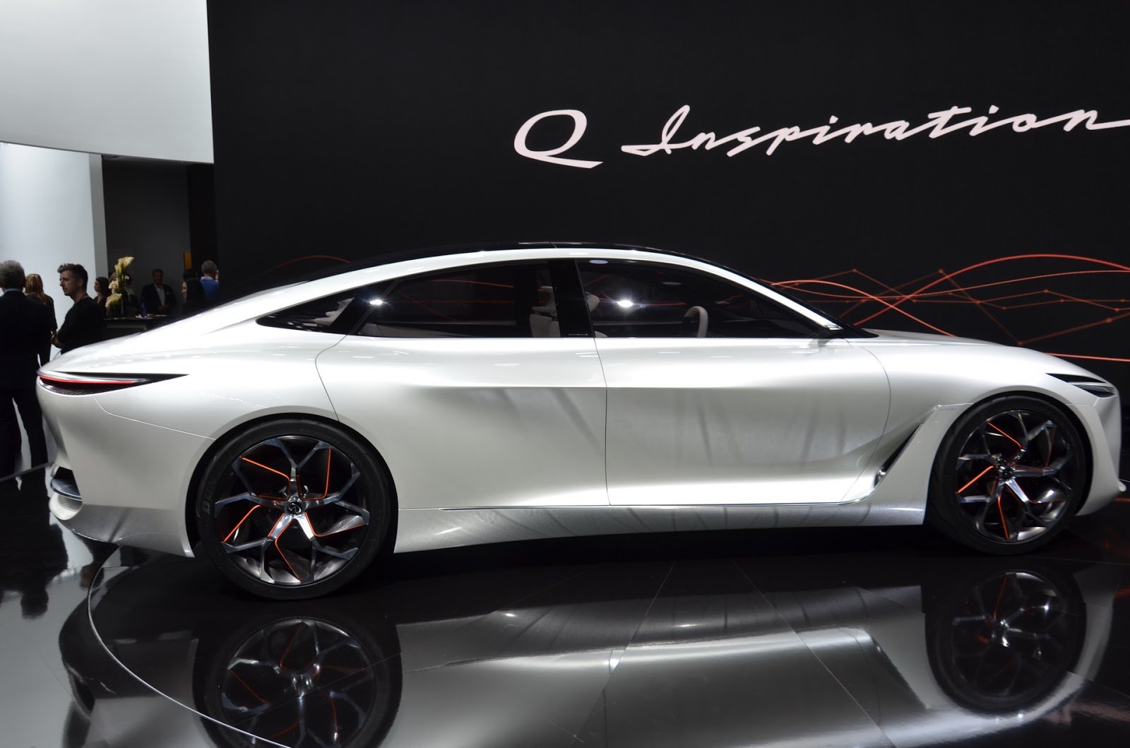 Первые электромобили Infiniti уже проходят тайные испытания. Серийные образцы будут выглядеть подобно концепт-кару Q Inspiration — с плавно спадающей крышей, массивными воздухозаборниками бамперов и округлыми крыльями, переходящими в резкие ребра жесткости боковин. Фары и фонари станут зауженными.